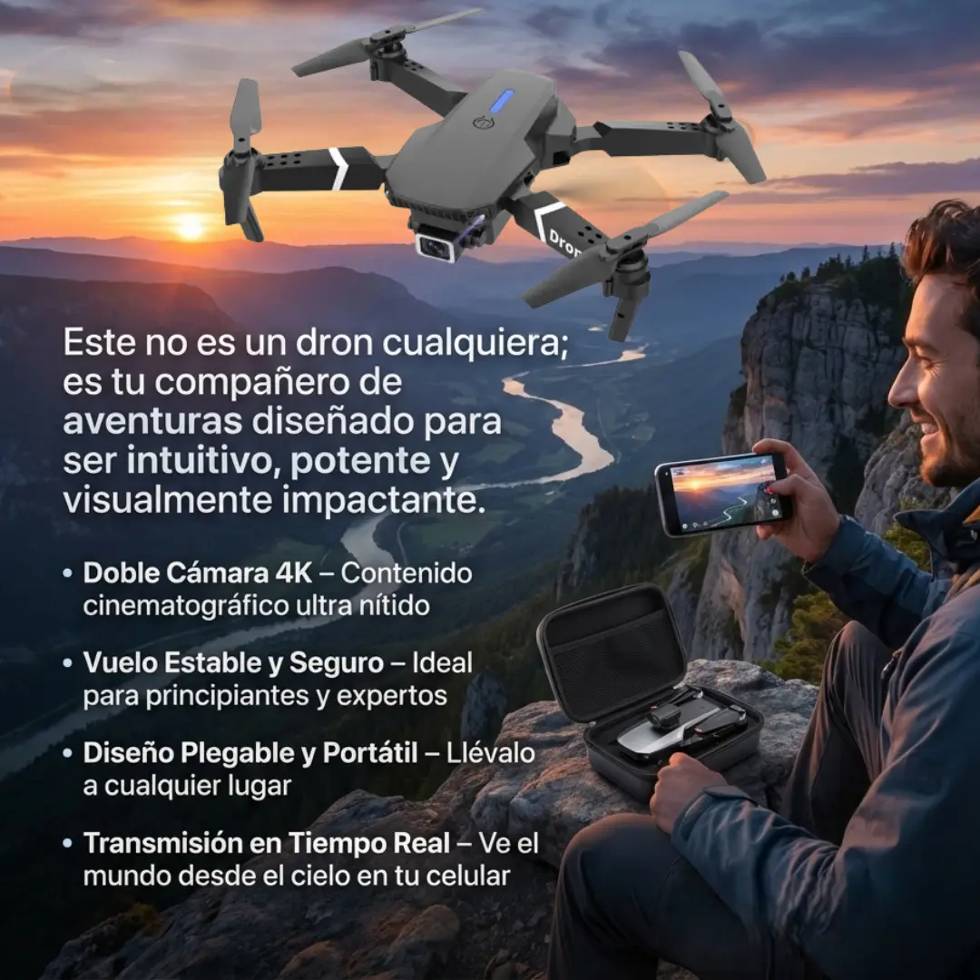Es mi primer dron y me sorprendió lo intuitivo que es. Me encantó poder ver todo en tiempo real desde mi celular. Perfecto para principiantes.