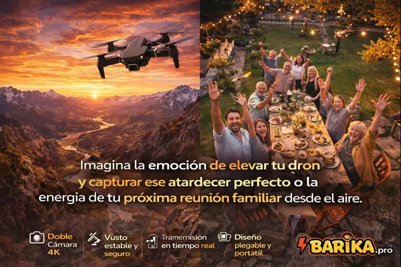 Excelente dron por el precio. La cámara 4K se ve increíble y el vuelo es muy estable. Fue muy fácil de usar desde el primer día. Sin duda volveré a comprar en Barika