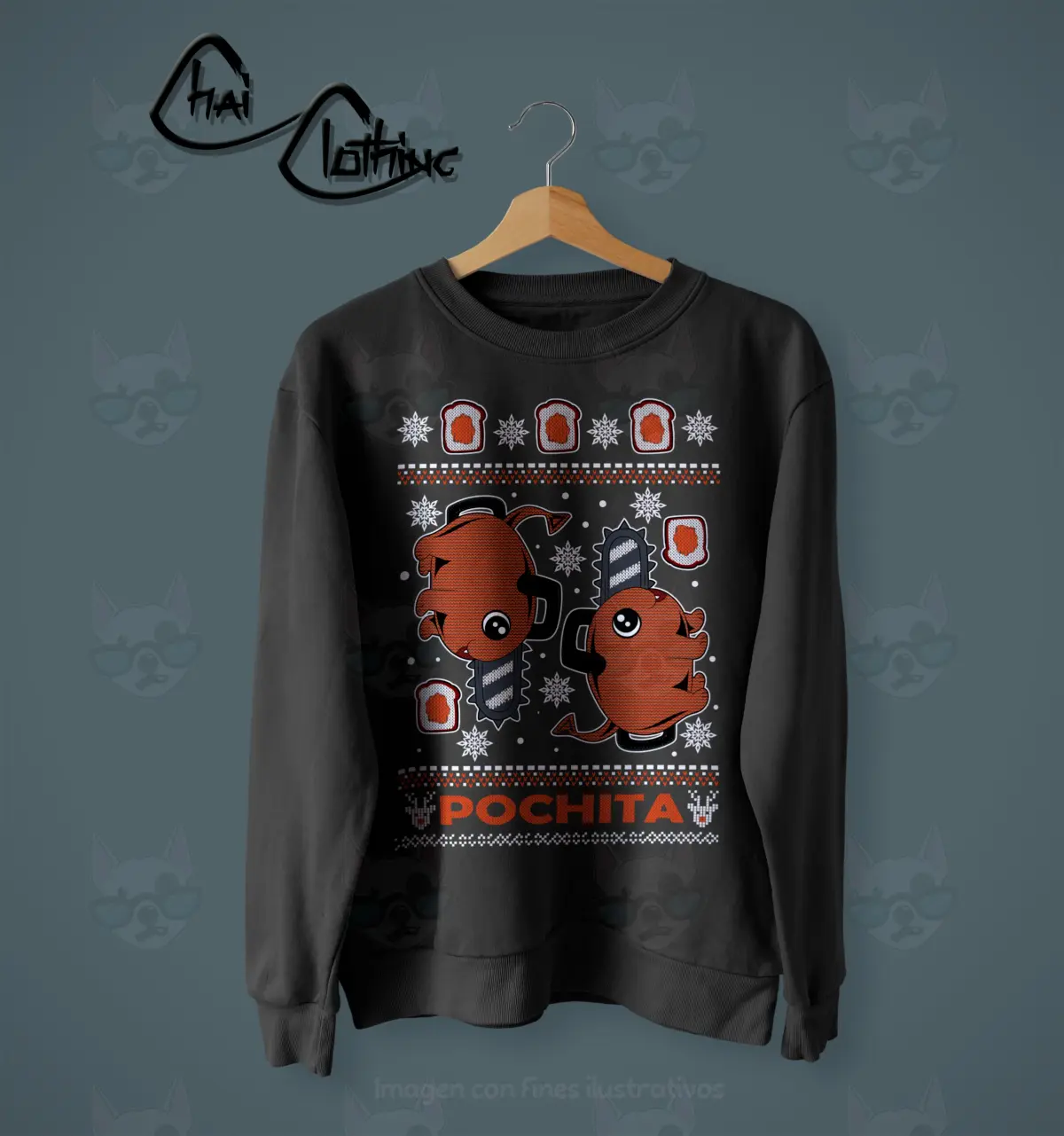 Celebra la Navidad al estilo más kawaii y rebelde con la Sudadera “Pochita Christmas Edition”. Inspirada en el entrañable personaje de Chainsaw Man, esta prenda combina el encanto del anime con la vibra festiva del invierno.